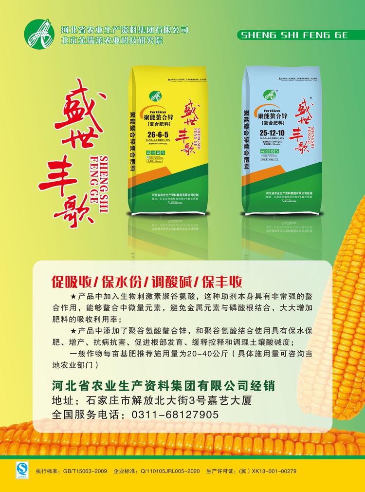 “盛世豐歌”牌聚能鰲合鋅肥是河北省農(nóng)資集團(tuán)依托華中農(nóng)業(yè)大學(xué)專利技術(shù),開發(fā)、研制的新一代資源節(jié)約型和環(huán)境友好型的生物高聚能型改良產(chǎn)品,該產(chǎn)品是根據(jù)河北廣大地區(qū)的土壤狀況結(jié)合玉米全生長期的營養(yǎng)需求,對大量元素進(jìn)行科學(xué)配比的基礎(chǔ)上,以純生物聚能營養(yǎng)劑-聚谷氨酸為核心增效動能,特別融入玉米生長所必需的生態(tài)螯合鋅和螯合鎂,通過高科技納米技術(shù)和智能調(diào)控手段,經(jīng)高塔工藝精制而成,為作物生長的各個階段提供充足的營養(yǎng),同時還有效避免了無效養(yǎng)分的囤積和浪費(fèi)。