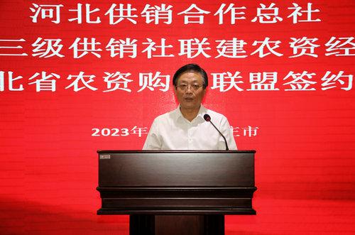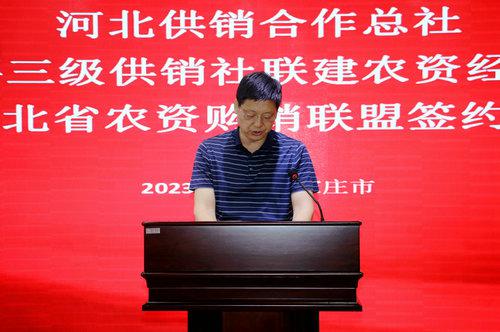 此次河北省三級供銷社聯(lián)合建設(shè)農(nóng)資經(jīng)營體系簽約儀式,是深入貫徹落實黨中央關(guān)于“完善農(nóng)資保供穩(wěn)價應(yīng)對機制”、保障糧食安全、創(chuàng)新農(nóng)業(yè)生產(chǎn)服務(wù)方式、深入推進(jìn)供銷社綜合改革、健全完善農(nóng)資服務(wù)網(wǎng)絡(luò)、有效提升農(nóng)資經(jīng)營服務(wù)能力、拓展終端市場的重大舉措。河北省農(nóng)資集團(tuán)全面貫徹黨的二十大精神,深入學(xué)習(xí)貫徹習(xí)近平總書記重要講話和重要指示精神,牢記“國之大者”,繼承發(fā)揚“背簍精神”“扁擔(dān)精神”,堅守服務(wù)“三農(nóng)”初心,主動擔(dān)當(dāng)作為,做優(yōu)做強主業(yè),充分發(fā)揮農(nóng)資流通主渠道作用,為農(nóng)民提供優(yōu)質(zhì)、優(yōu)價、綠色農(nóng)資商品,為糧食生產(chǎn)安全,建設(shè)農(nóng)業(yè)強省貢獻(xiàn)供銷力量。