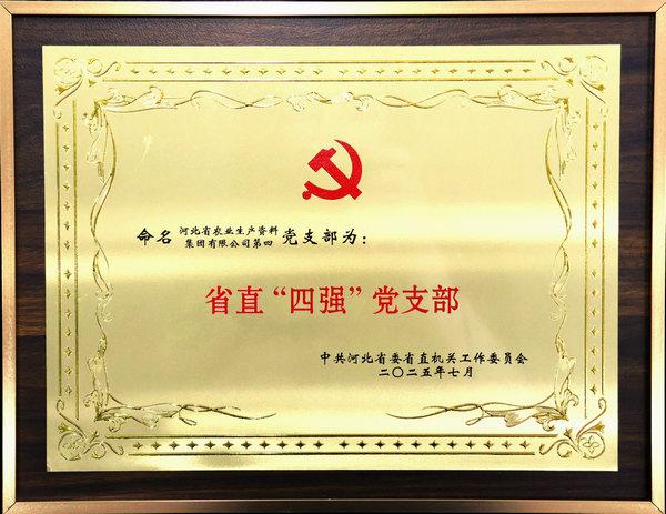 本網(wǎng)訊 近日,中共河北省委省直機(jī)關(guān)工作委員會(huì)發(fā)布《關(guān)于命名2025年省直機(jī)關(guān)“四強(qiáng)”黨支部的決定》,集團(tuán)公司第四黨支部榮獲省直“四強(qiáng)”黨支部稱號(hào)。