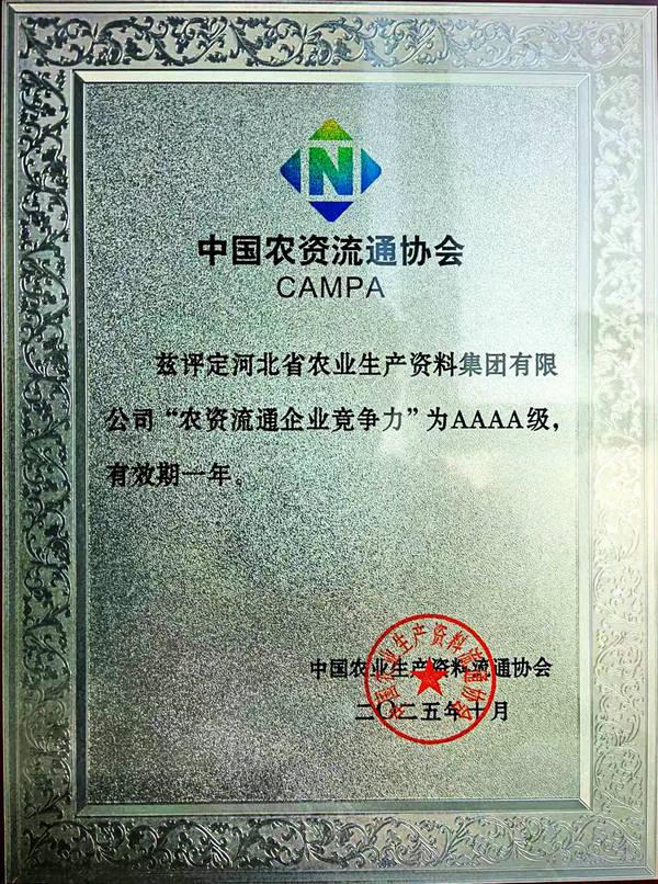 本網(wǎng)訊 11月4日,中國農(nóng)業(yè)生產(chǎn)資料流通協(xié)會在江蘇省南京市召開“2025年度中國農(nóng)資經(jīng)銷商年會”。會上發(fā)布了“2024/2025中國農(nóng)資流通行業(yè)發(fā)展報告”,公布了2025年度中國農(nóng)資流通企業(yè)信用等級評價結(jié)果、2025年度農(nóng)資流通企業(yè)競爭力評價及農(nóng)資行業(yè)知名品牌認(rèn)定結(jié)果。集團公司被評為“AAA級信用企業(yè)”,同時榮獲“2025年度農(nóng)資流通企業(yè)競爭力AAAA級”,“冀農(nóng)”品牌被評為‘“AAA”級農(nóng)資行業(yè)知名品牌(產(chǎn)品類)。