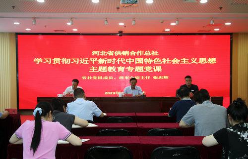 本網(wǎng)訊 為深入學(xué)習(xí)習(xí)近平新時(shí)代中國(guó)特色社會(huì)主義思想,推動(dòng)主題教育走深走實(shí),7月10日下午,省供銷社黨組成員、理事會(huì)副主任張忠輝結(jié)合自己關(guān)于推動(dòng)供銷社高質(zhì)量發(fā)展的認(rèn)識(shí)和思考,為公司全體黨員、中層以上干部和青年理論小組成員講授專題黨課。公司黨委書記馬朝輝主持會(huì)議。